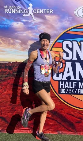 As with many athletes, Kris' journey was not completely void of setbacks. In 2022, she was hit by a driver while speeding along on her bike. She suffered a cervical fracture of her spine, a concussion, and needed a rod and 14 screws in her arm. Her arm was placed in a cast and neck in a collar. She explained to her doctor that she wasn't hurt as badly as he thought, so he agreed to remove the collar and Kris was soon back out running again. She is a firm believer that good things come out of everything, as this taught her patience and resilience. By 2024, she was able to complete the St. George marathon in 3:15, a W60-64 record.